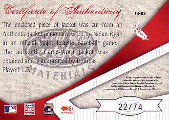 #FG-81 Fabric Of The Game Angels Used Jacket Die Cut '74' ( /74 )