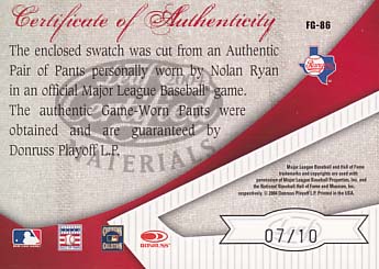 #FG-86 Fabric Of The Game Rangers Used Pants Autographed ( /10 )