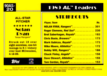 #90AS-20 1990 Topps All-Star Baseball Orange ( /25 )